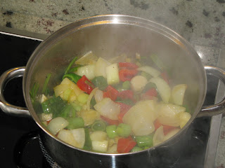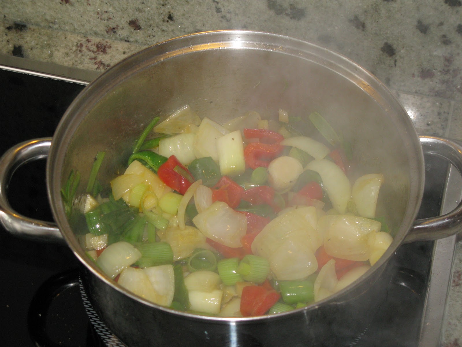 Bajamos a fuego lento, con la cazuela tapada, más o menos media hora, removiendo de vez en cuando.