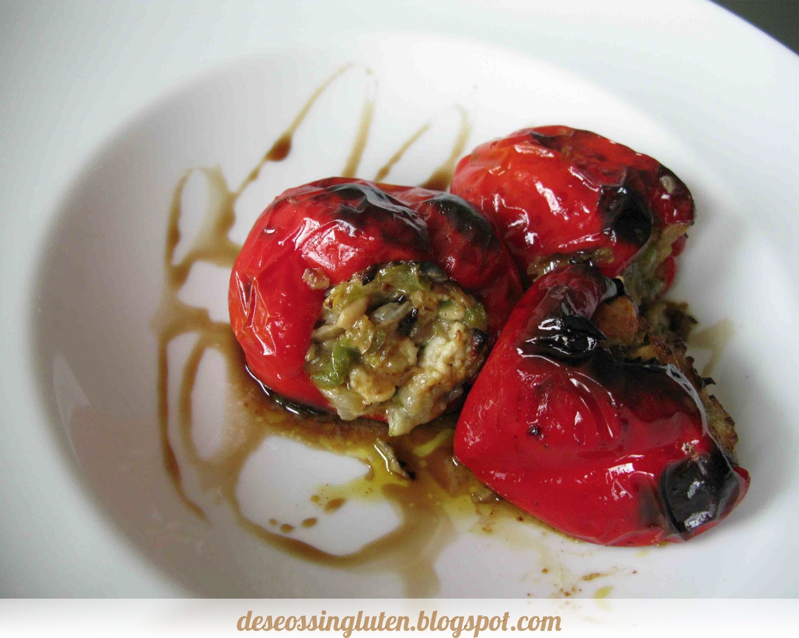 - Cocer en el horno precalentado a 180ºC 20- 25 minutos, hasta que el pimento esté hecho.(Darles la vuelta para que se hagan por los lados)